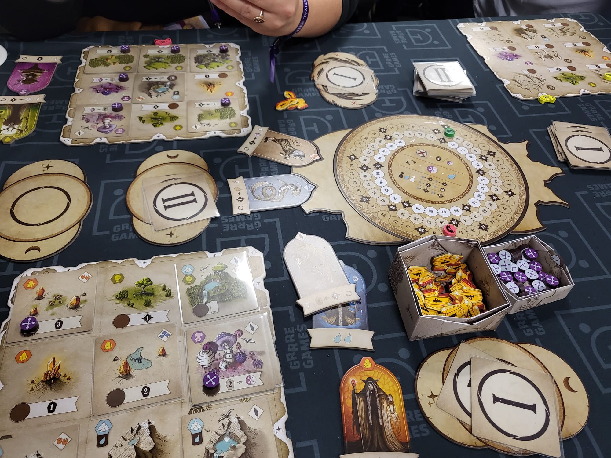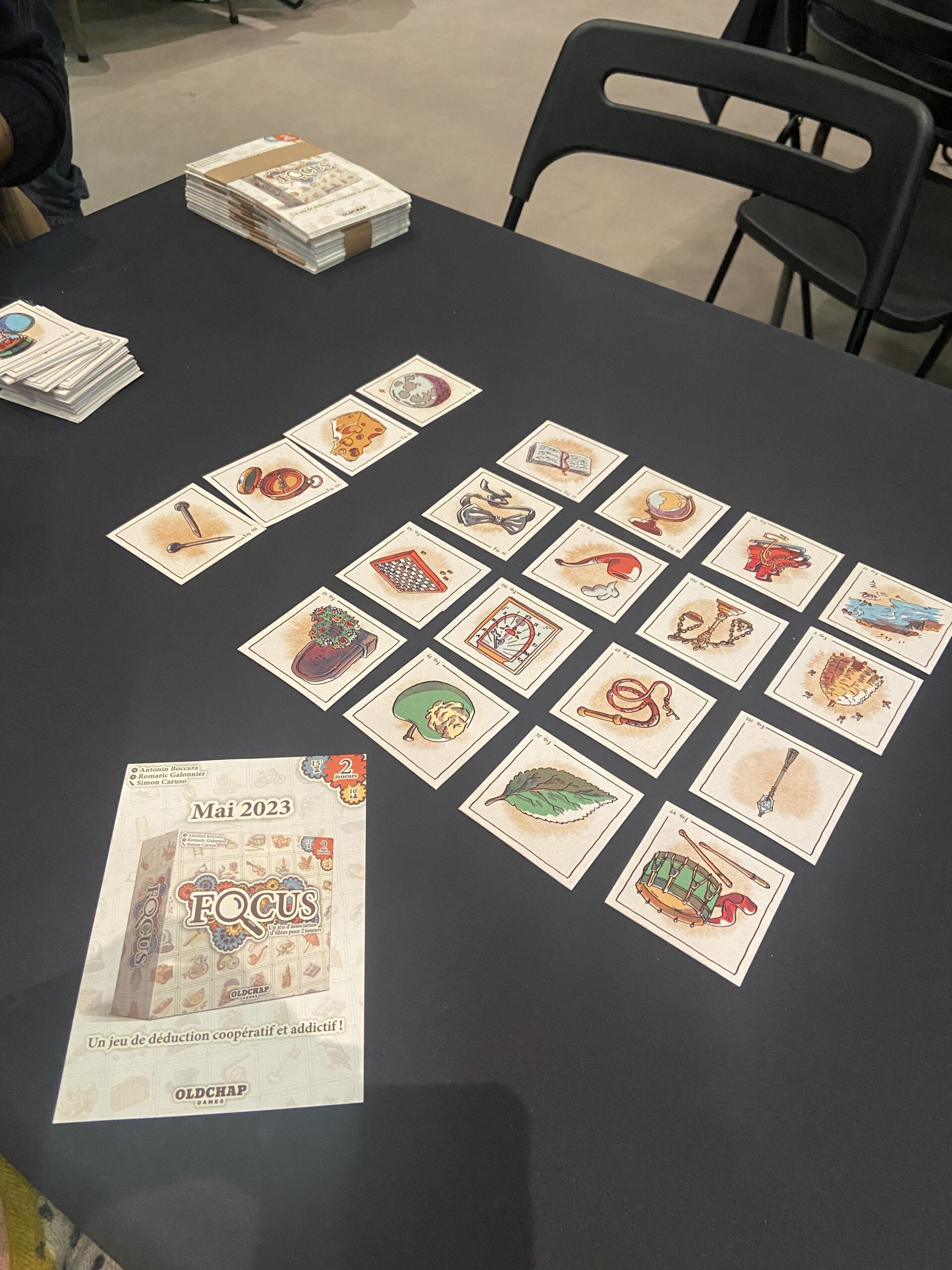 L’an dernier, je vous conseillais d’éviter de trop lister. Cela reste vrai. Dans les jeux testés, il y en a une majorité qui étaient sur notre liste, mais nous avons aussi découvert des jeux aux détours des allées et des tables disponibles, c’est un bon moyen de découvrir des pépites. Vous pouvez aussi regarder les autres jouer pendant quelques minutes pour vous faire un avis. Le weekend notamment, il est difficile de trouver des tables.