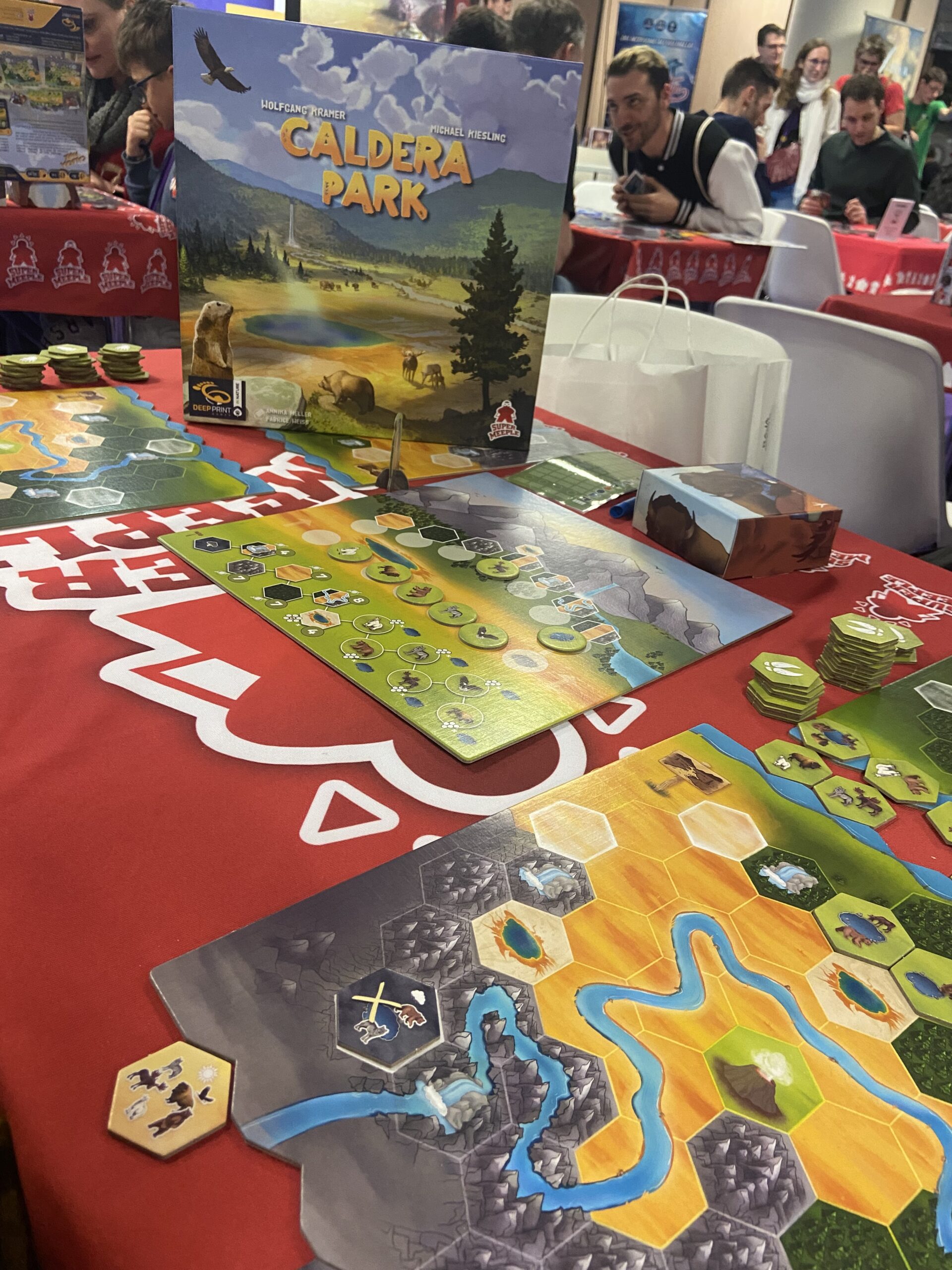 Suite de Savannah Park, testé à Cannes un an auparavant, Caldera Park se veut un peu plus complexe et, de fait, plus intéressant. Je ne suis toujours pas très fan de la direction artistique, vrai bémol du jeu, mais on prend quand même beaucoup de plaisir à agencer nos tuiles. Un jeu de placement avec des animaux, on valide (comme le confirme le Top 1).