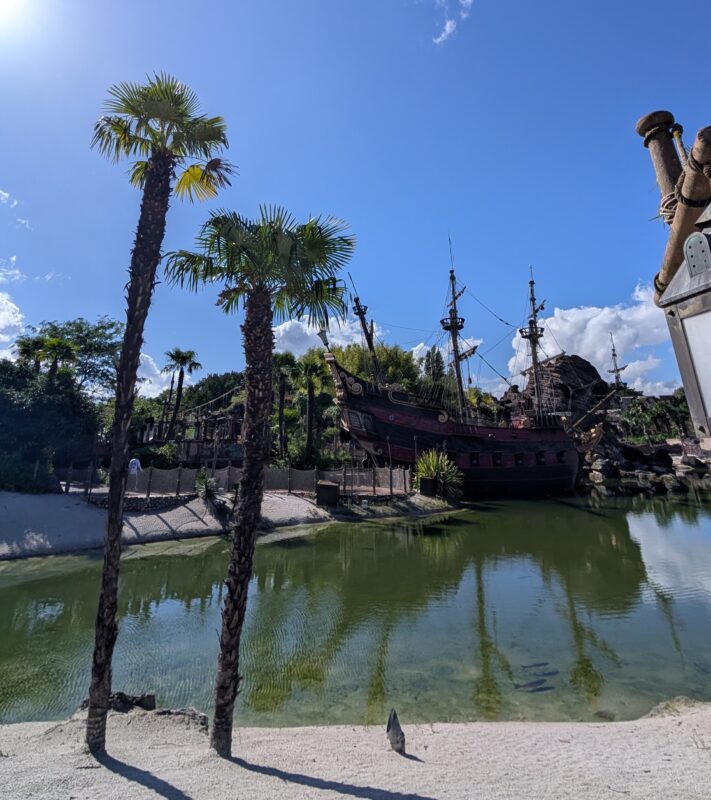 - Pirates of the Caribbean : deux descentes mais qui passent bien. L’ambiance sombre et les coups de canon peuvent surprendre, mais notre petit a tenu bon. Comme pour le Manoir Fantôme, on désamorce !